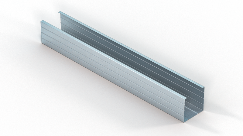Montante Standard in acciaio 50 mm, preforato per agevolare il passaggio dei corrugati, utilizzato in abbinamento a guide a U 50 mm e nella realizzazione di orditure metalliche per pareti, contropareti e controsoffitti autoportanti.